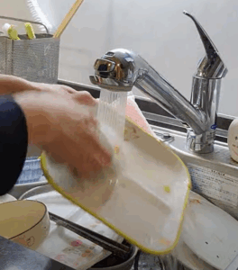 手洗いで食器を洗う時、いきなり洗剤を付けて洗う人は少ないですよね。